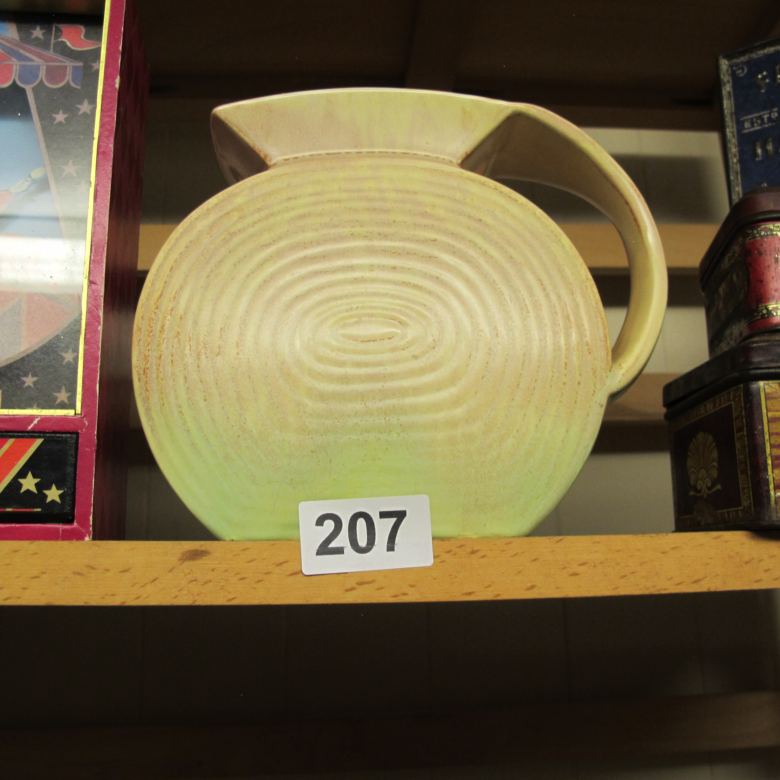 Art Deco Style Earthenware Disc Jug with Concentric Ribbing