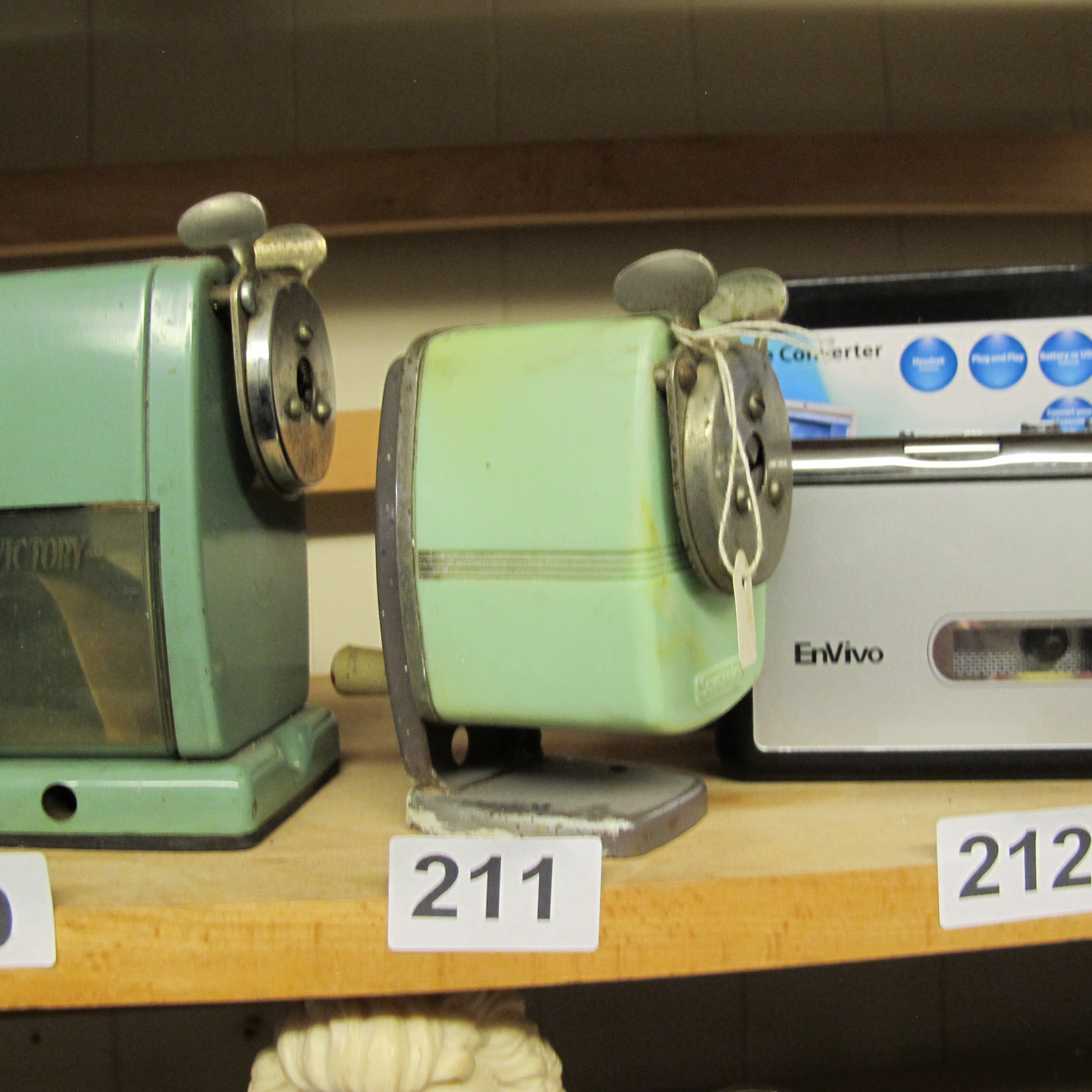 A Trio of Items Including Victory and Velos Mechanical Pencil Sharpeners and an EnVivo Cassette Converter