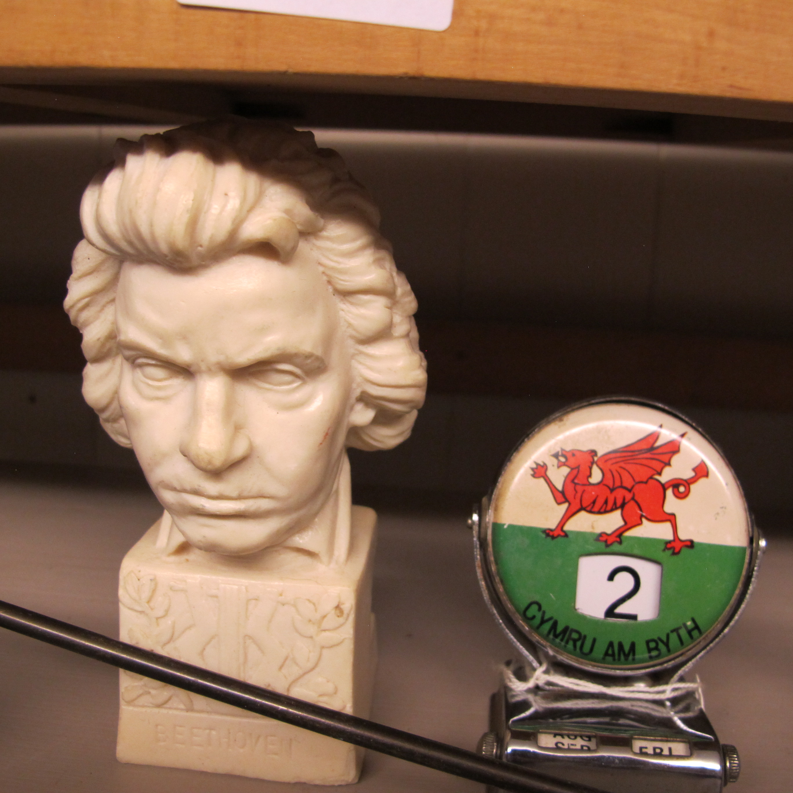 Two Items Comprising a Cast Resin Beethoven Bust and a Welsh Perpetual Desk Calendar