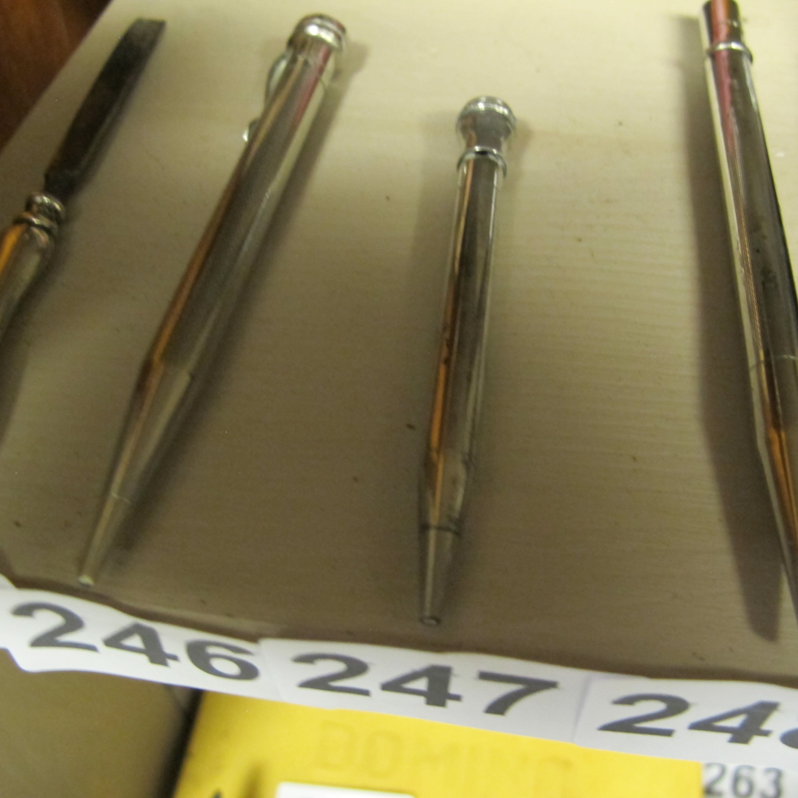 A Trio of Vintage White Metal Propelling Pencils in the Style of Wahl Eversharp