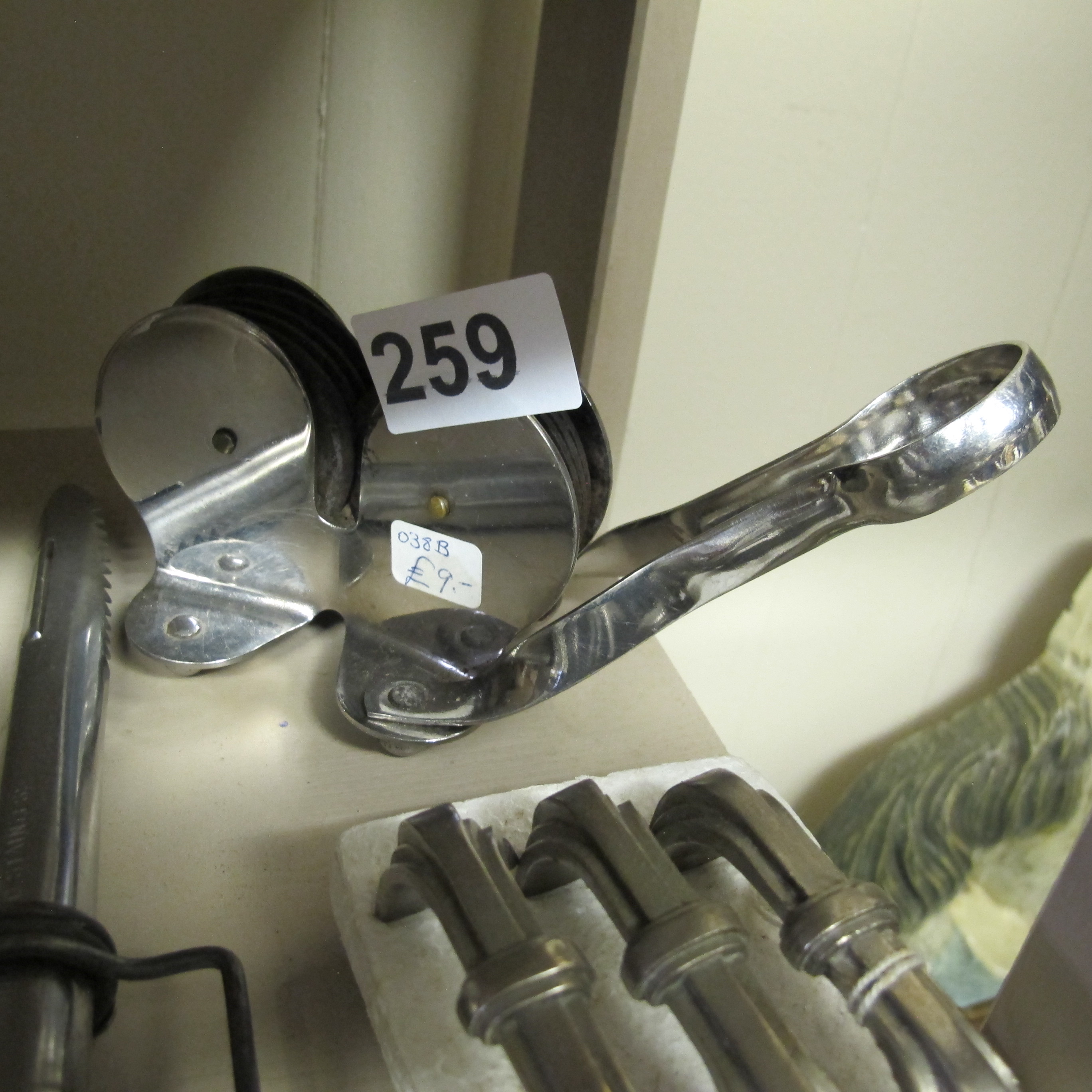 A mid-20th-century chrome-plated pull-through knife sharpener