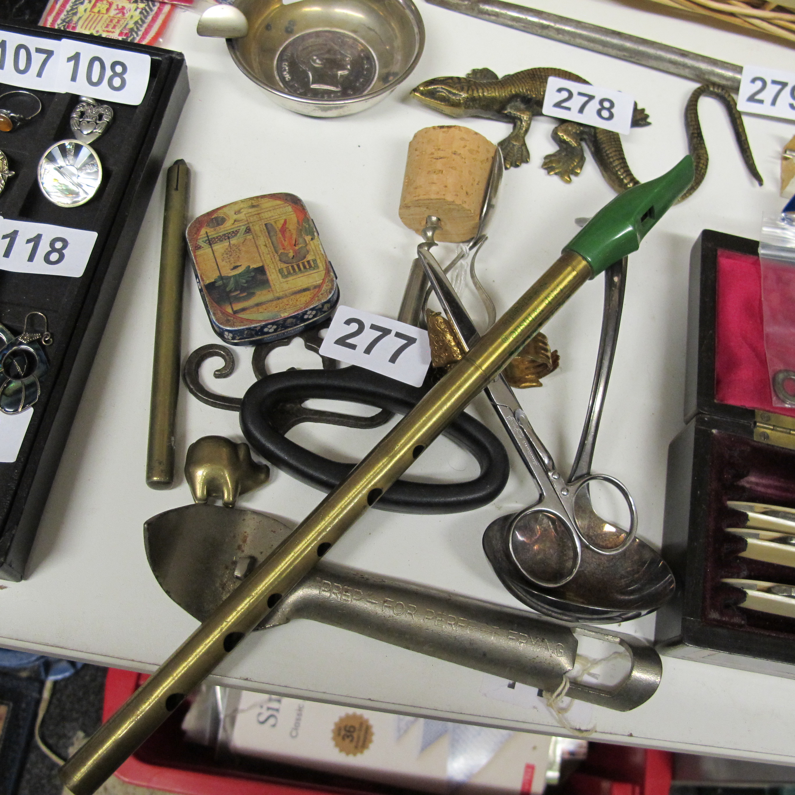 An Assortment of Vintage Tools and Collectibles Including a Generation Penny Whistle