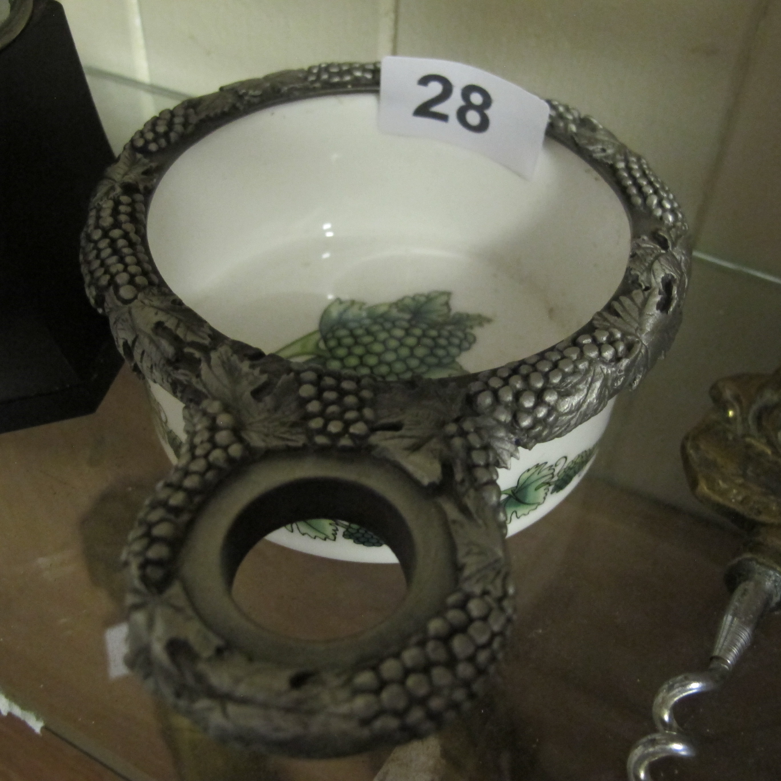 Ceramic tastevin style bowl with cast metal grapevine mount