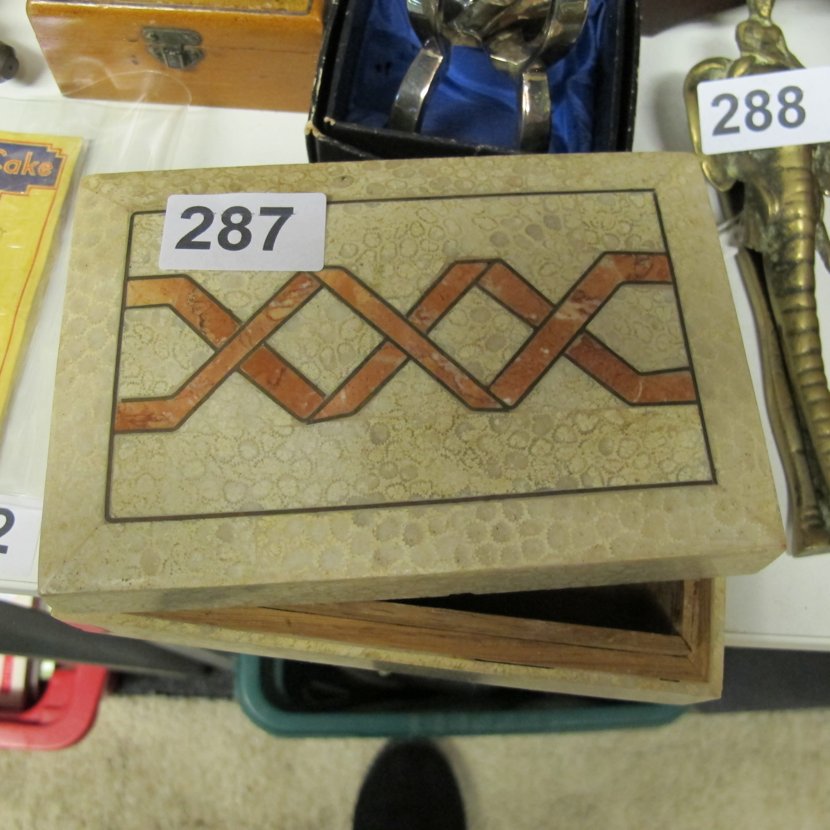 An Art Deco Style Tessellated Stone and Marble Inlaid Box