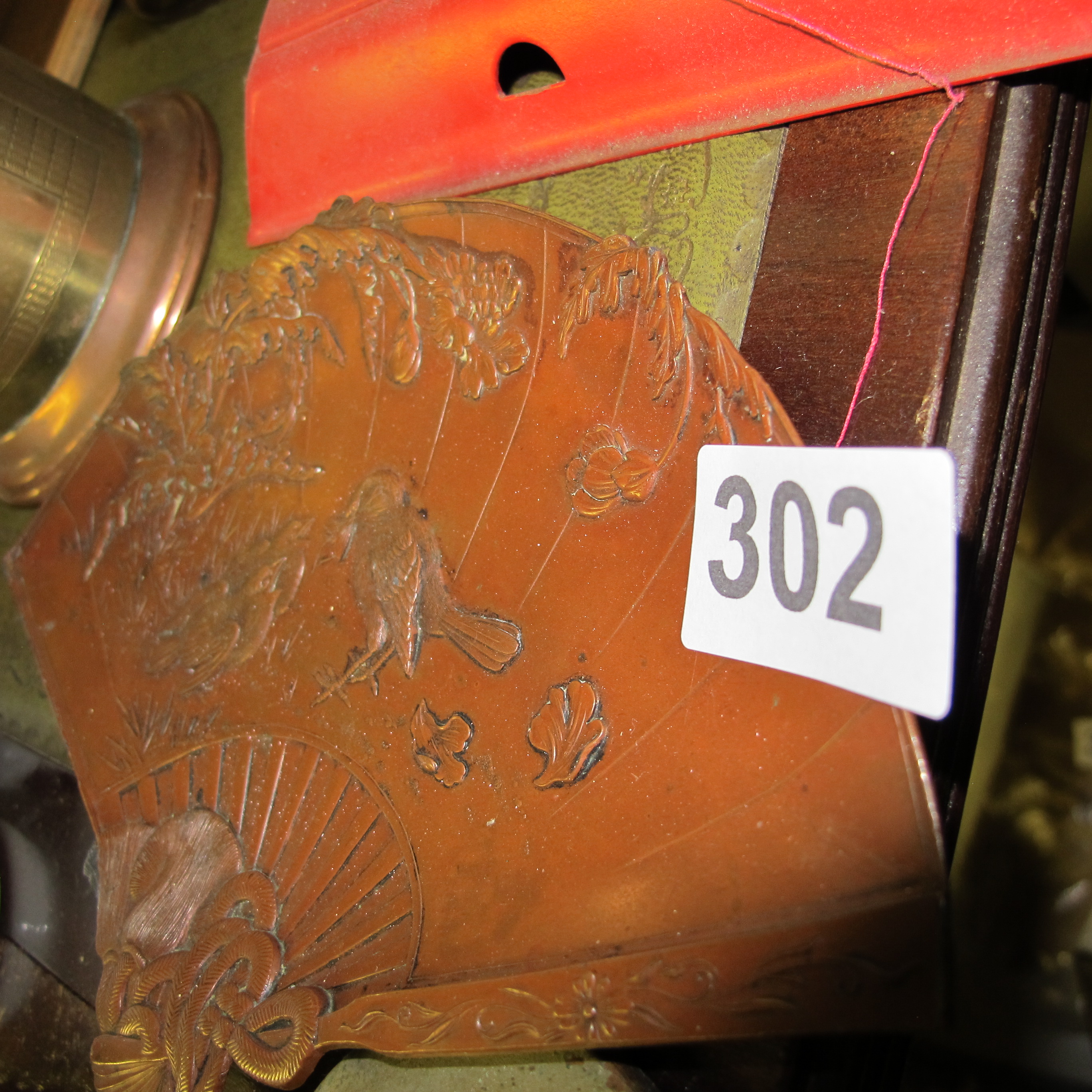 A late 19th-century Japonisme style copper fan-shaped wall plaque