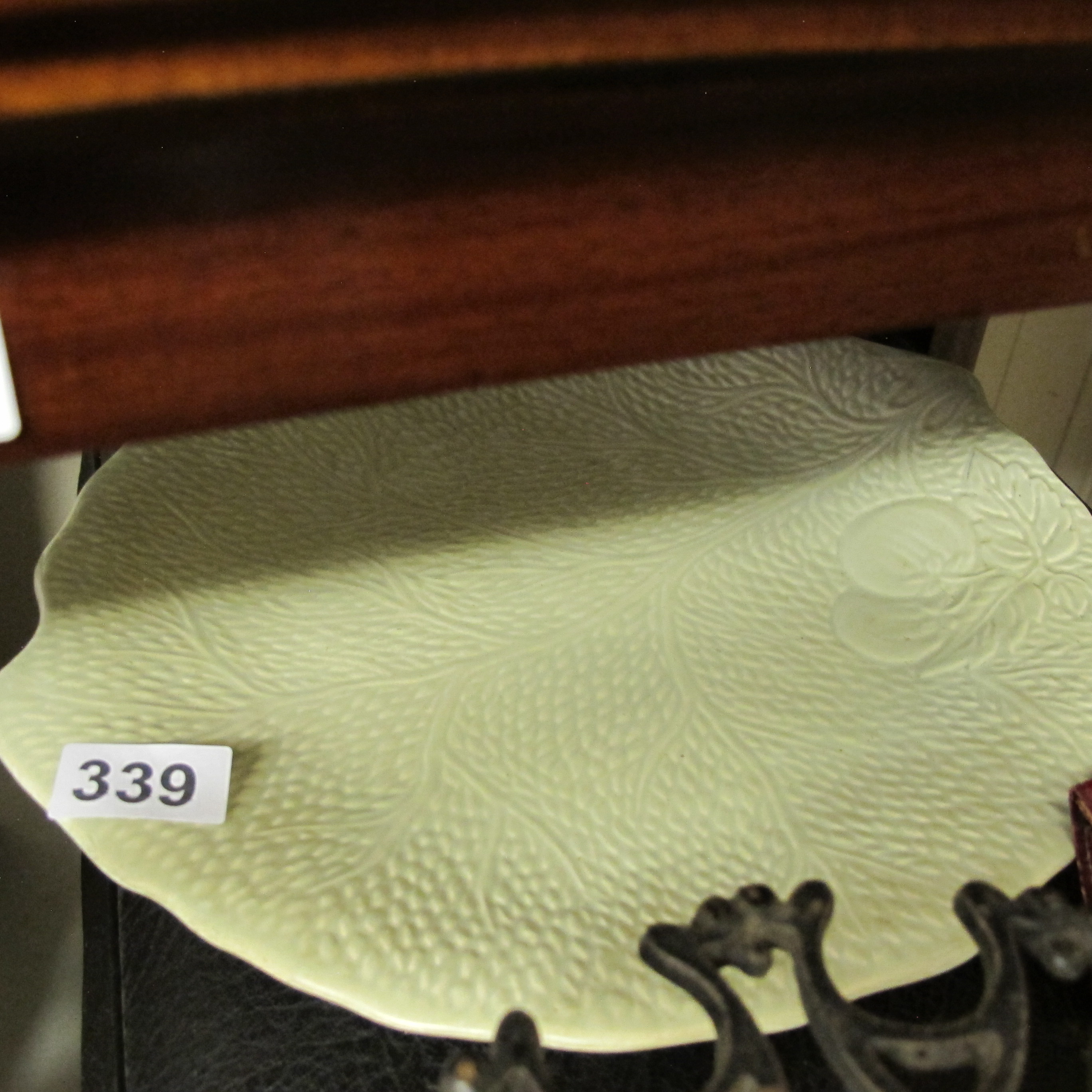 A yellow cabbage leaf relief-moulded ceramic dish in the style of Carlton Ware