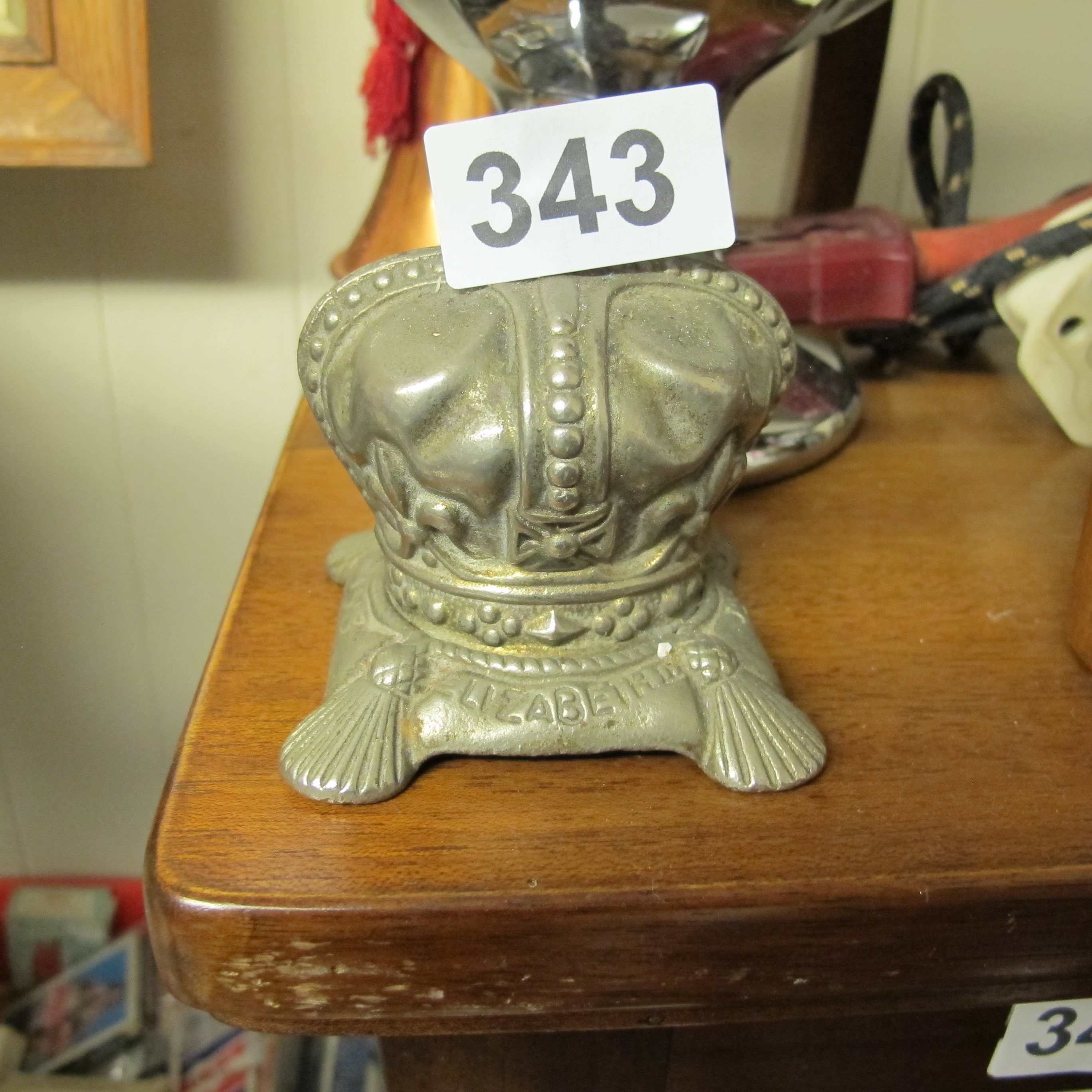 A Queen Elizabeth II 1953 Coronation Commemorative Cast Metal Crown Money Box