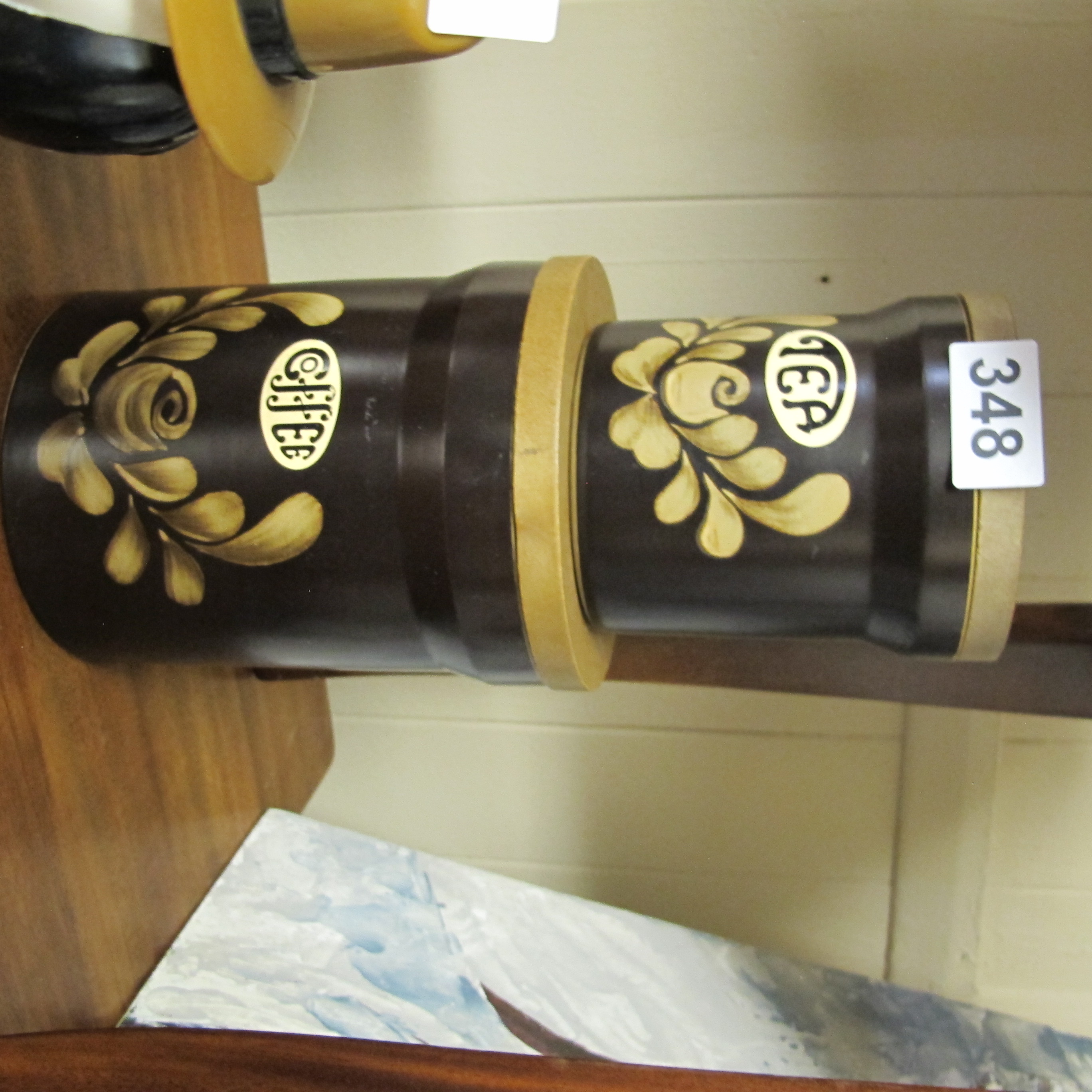A Pair of Stoneware Storage Canisters Attributed to Denby in the Bakewell Pattern
