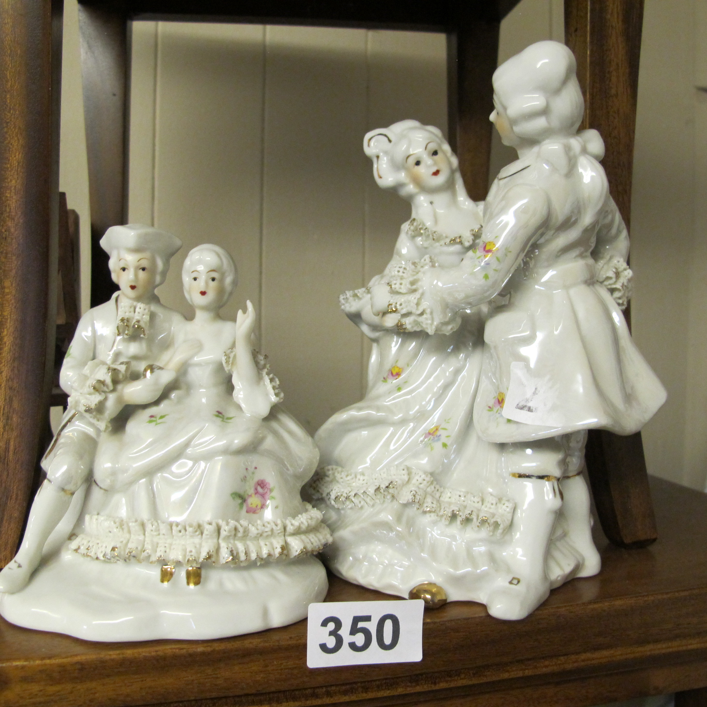 Two Continental Glazed Porcelain Figurine Groups in the Style of Dresden