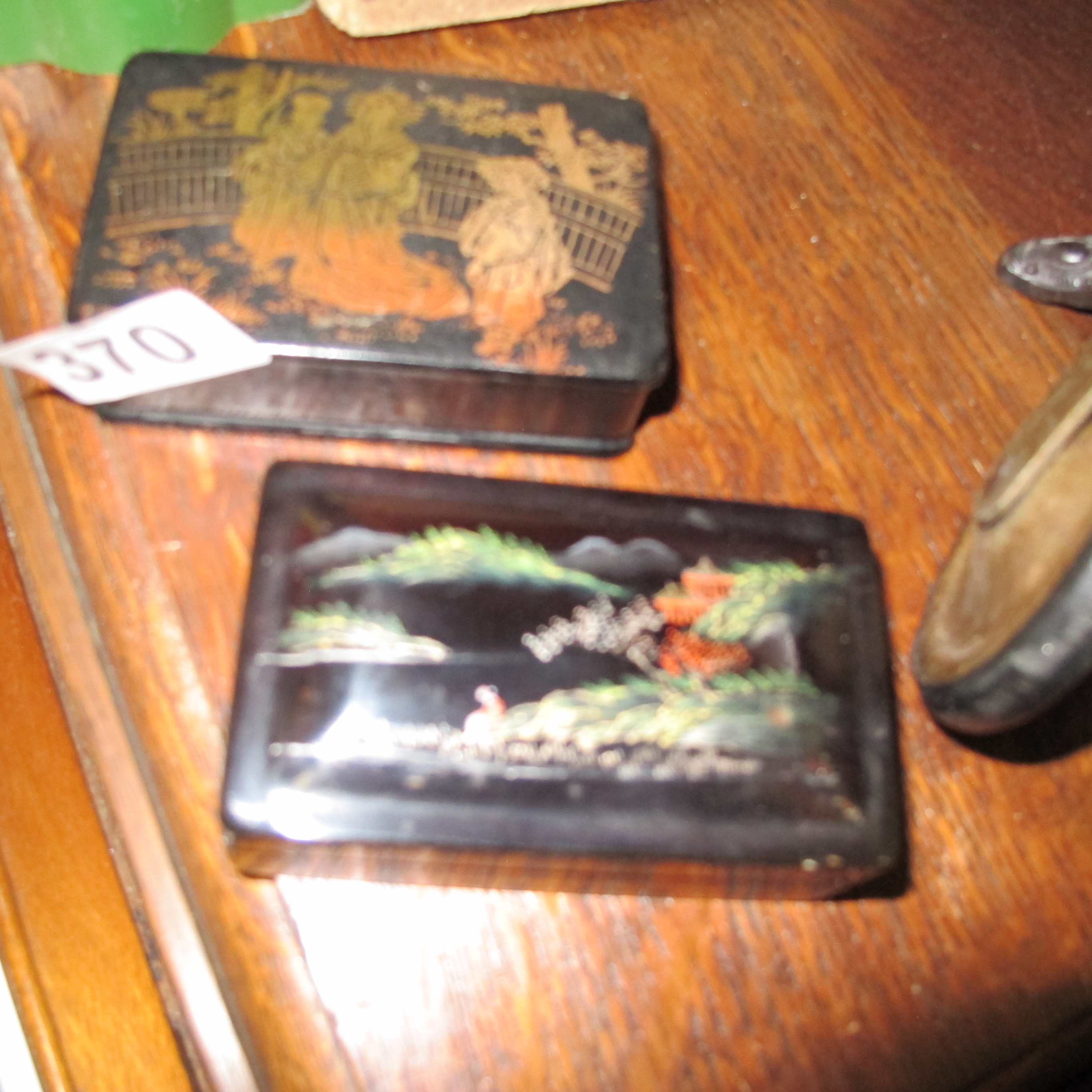 Two Japanese and Chinoiserie Style Black Lacquer and Papier-mâché Lidded Boxes