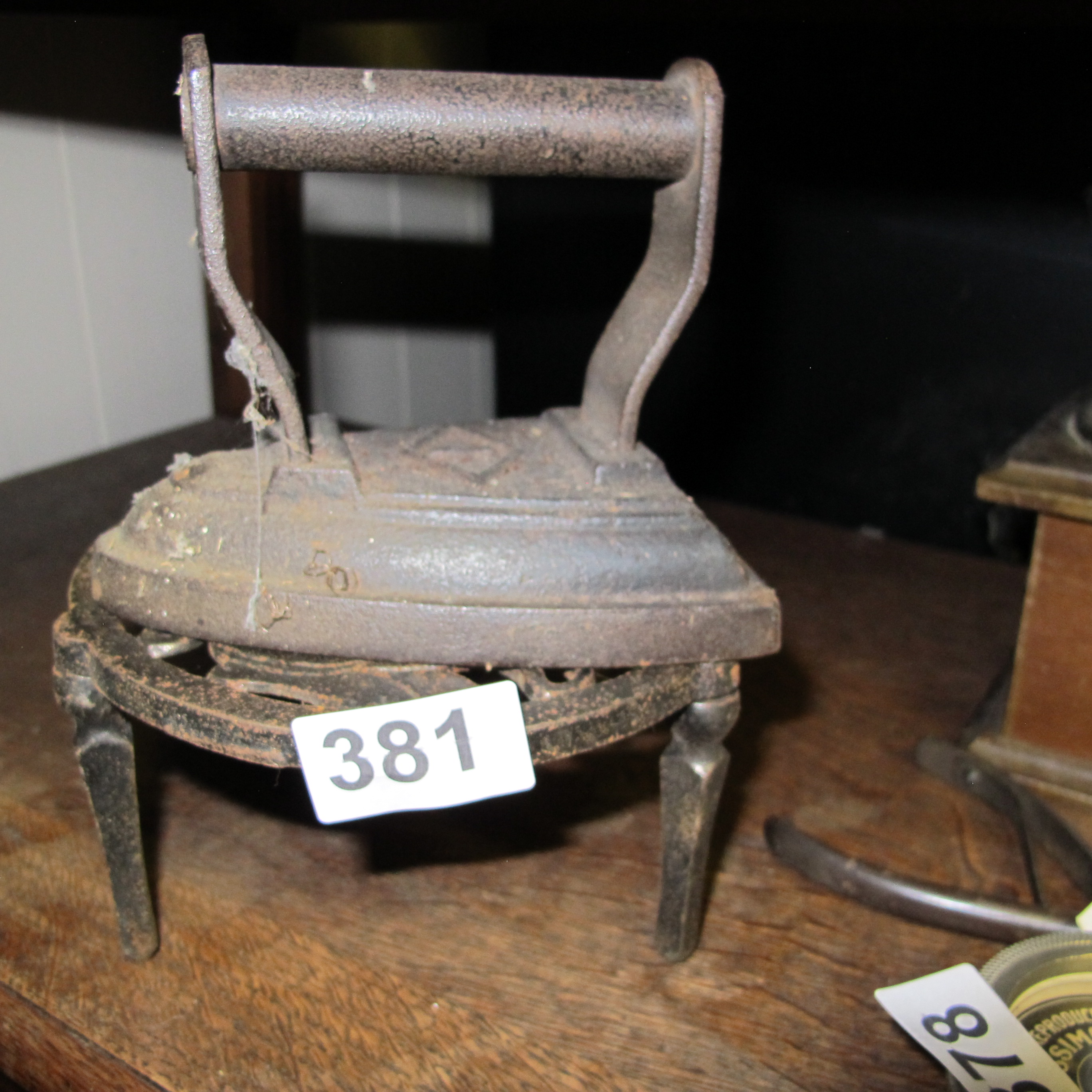 Two Cast Iron Items comprising a Sad Iron and Trivet