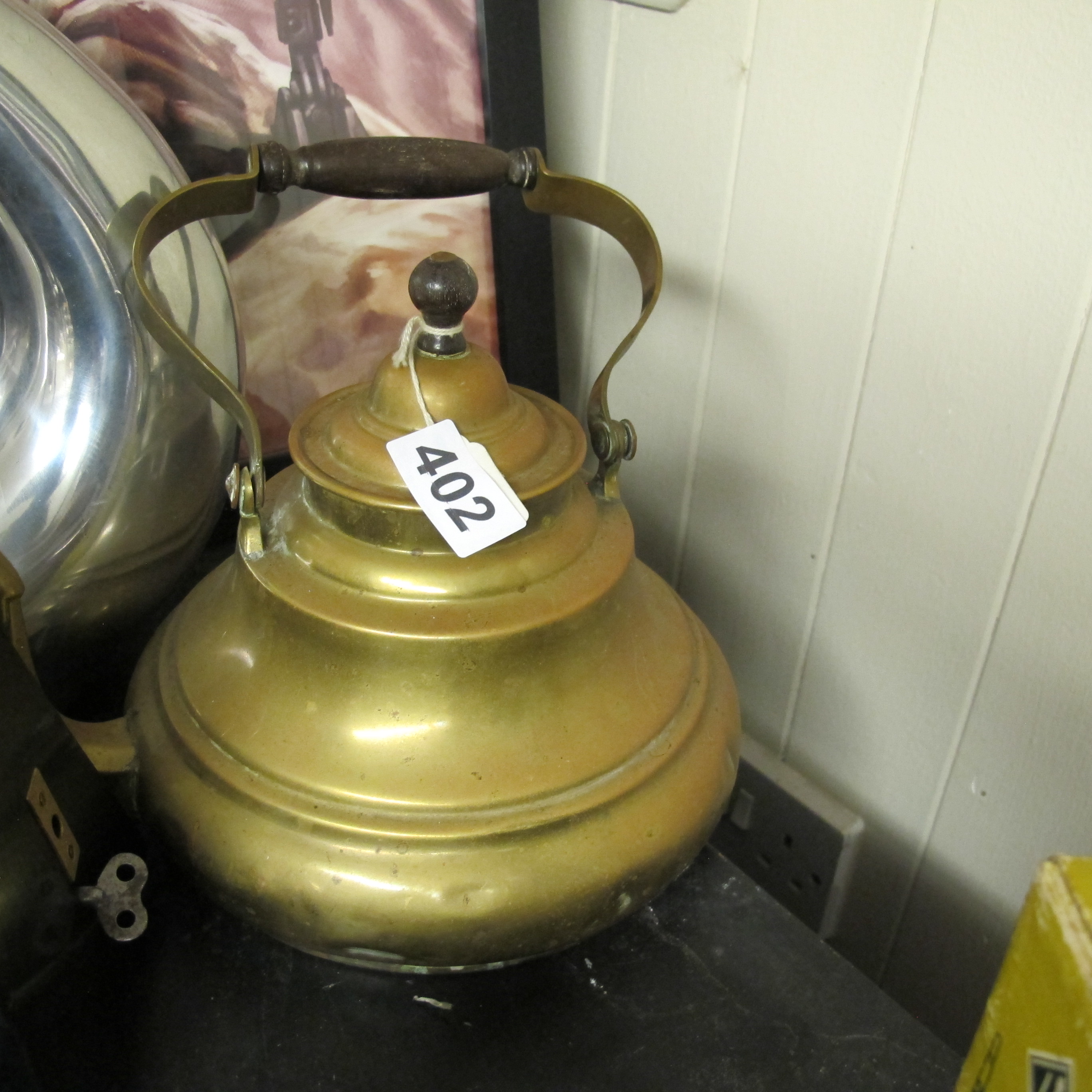 A Late 19th Century Brass Kettle with Turned Wooden Handle