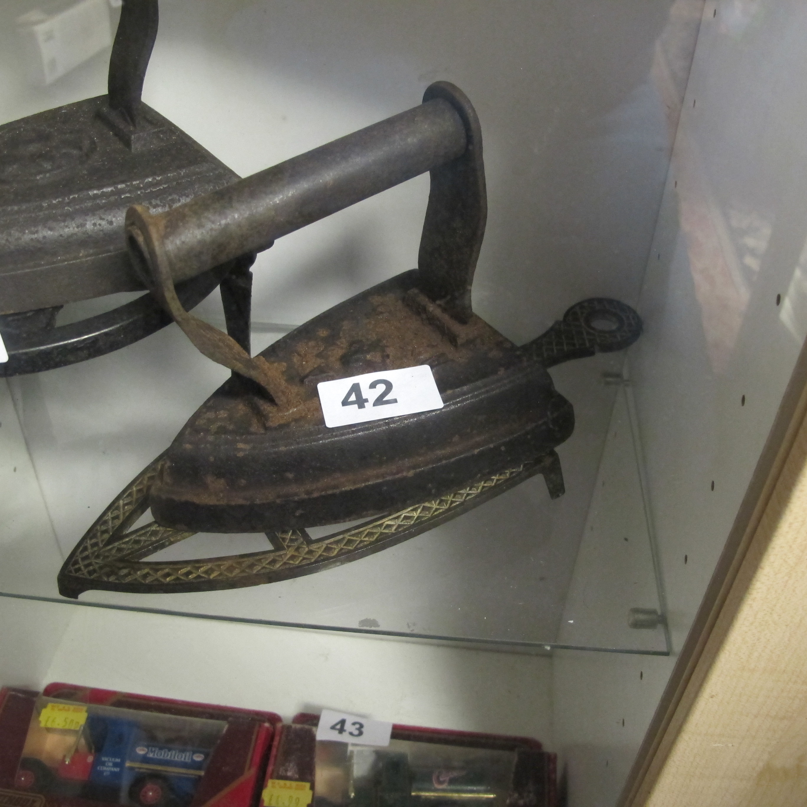 An Antique Cast Iron No. 8 Sad Iron and Matching Lattice Pattern Trivet