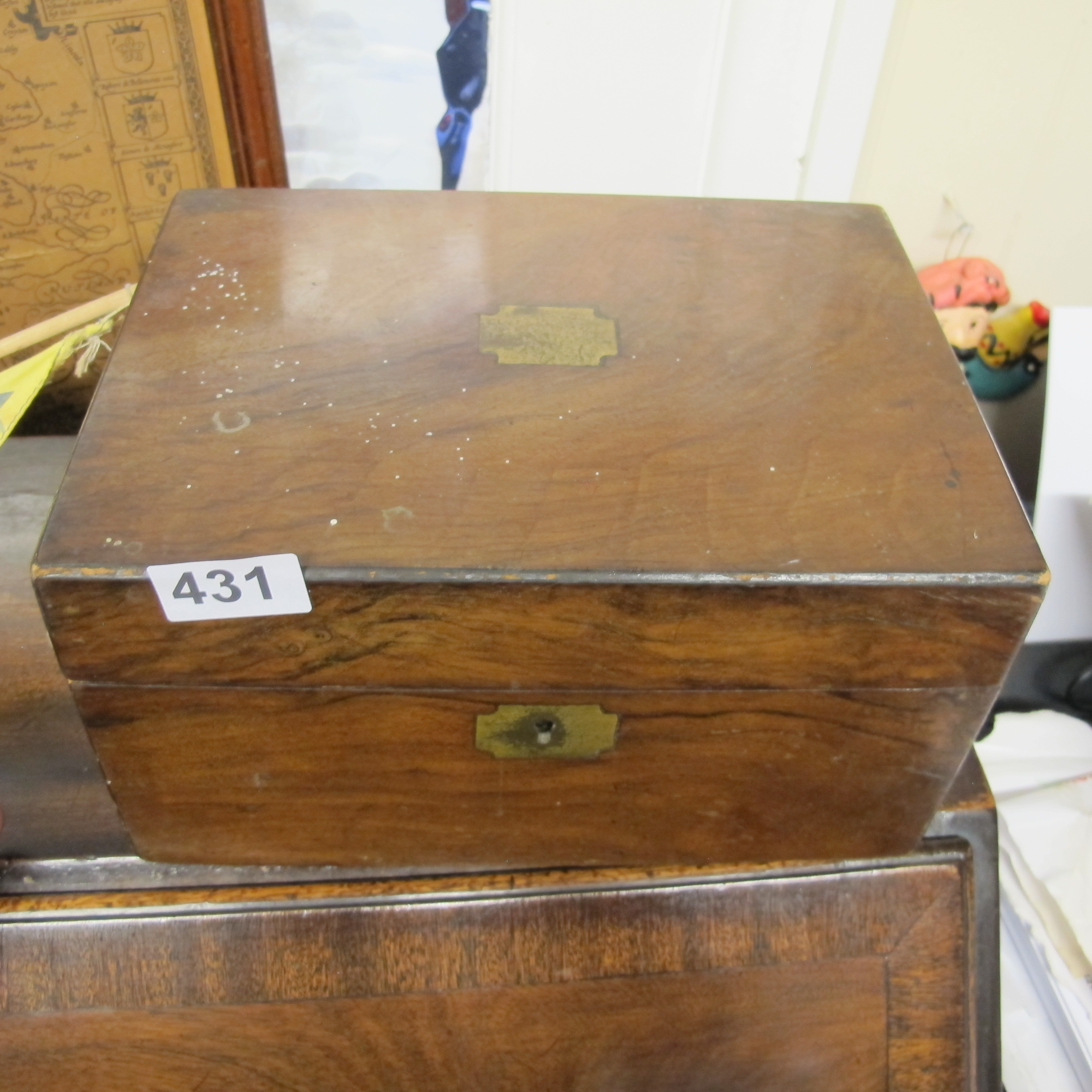 Victorian Walnut Veneered Rectangular Box with Brass Mounts