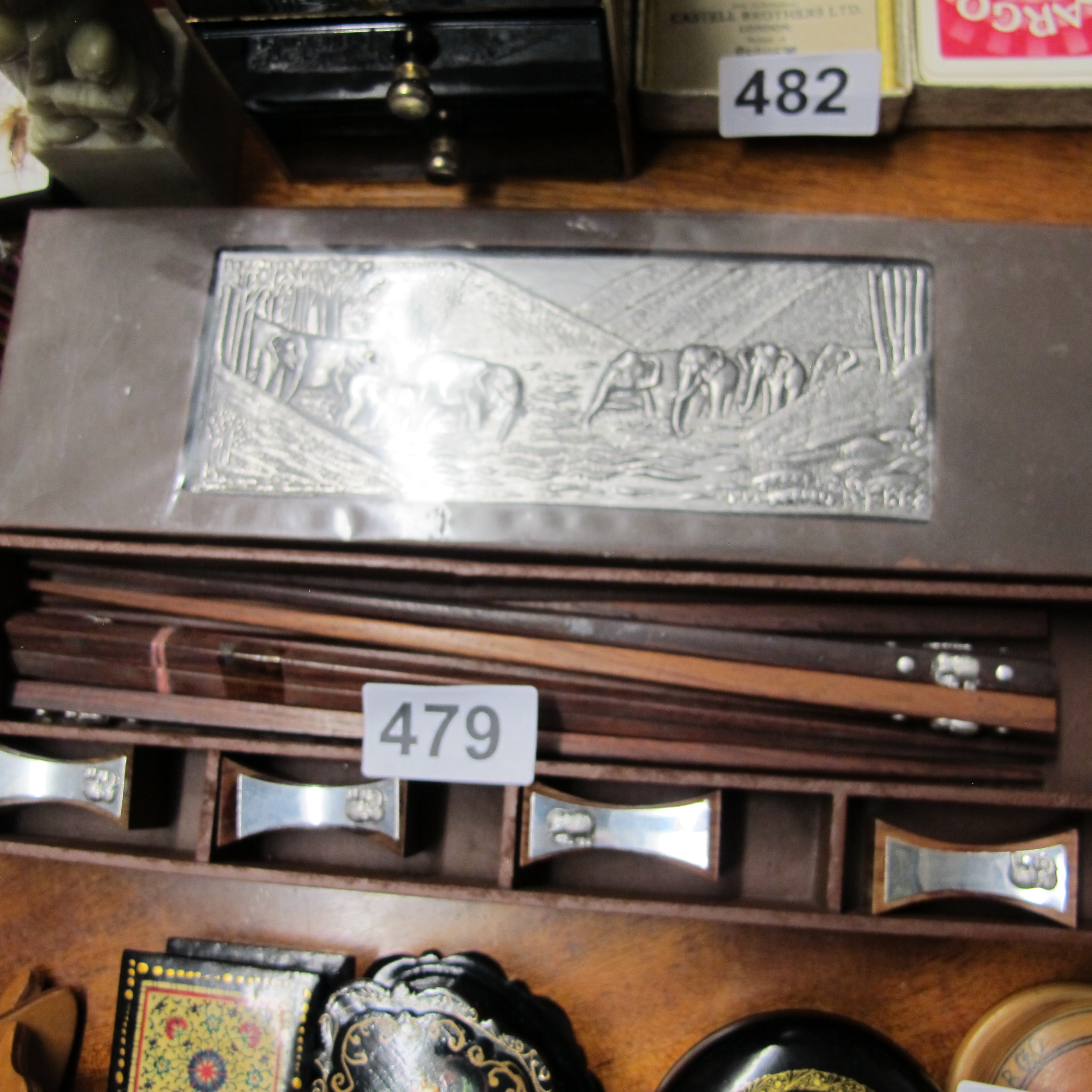 A Thai Pewter and Wood Chopstick Set in Presentation Box