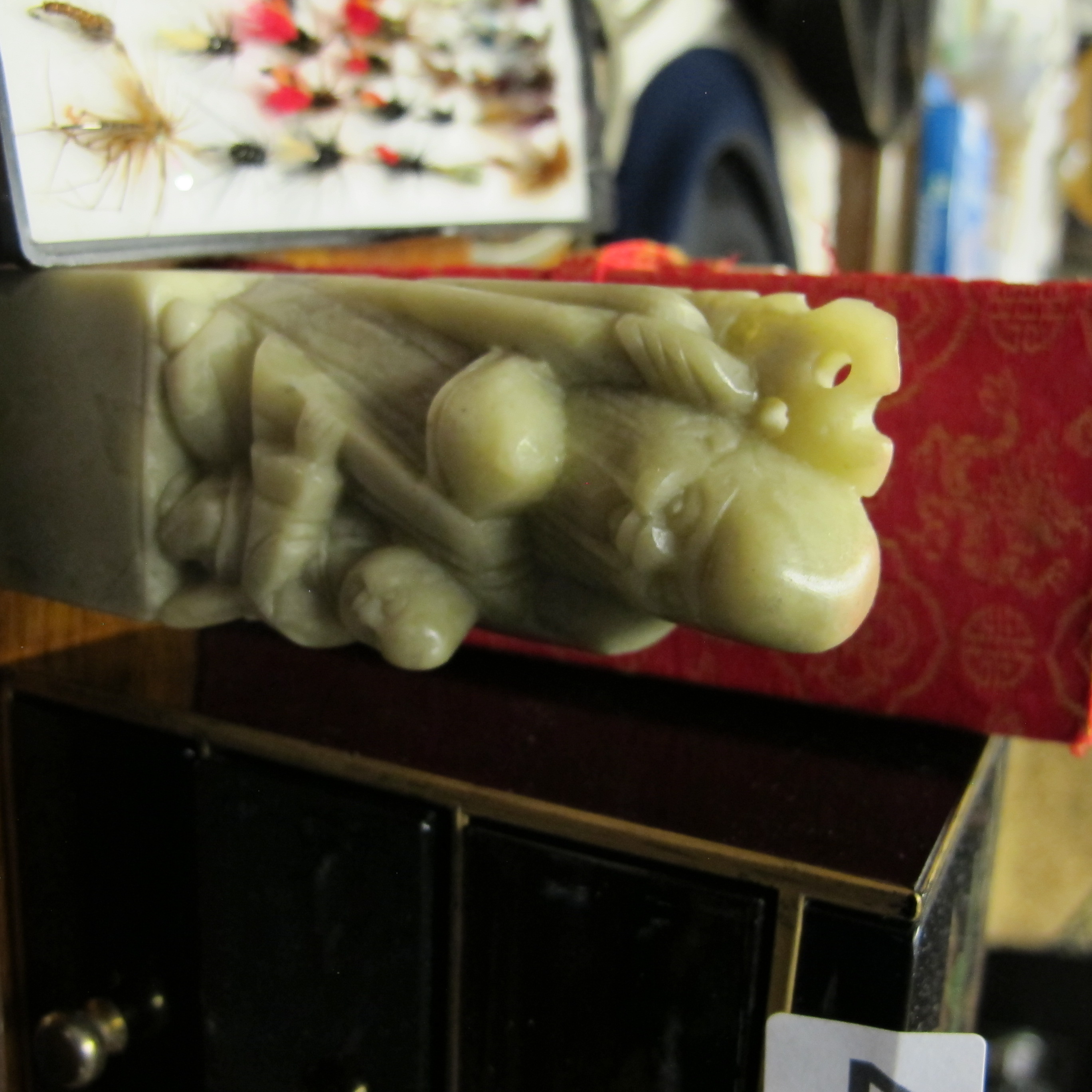 A Chinese carved soapstone seal with Shoulao finial, 20th century