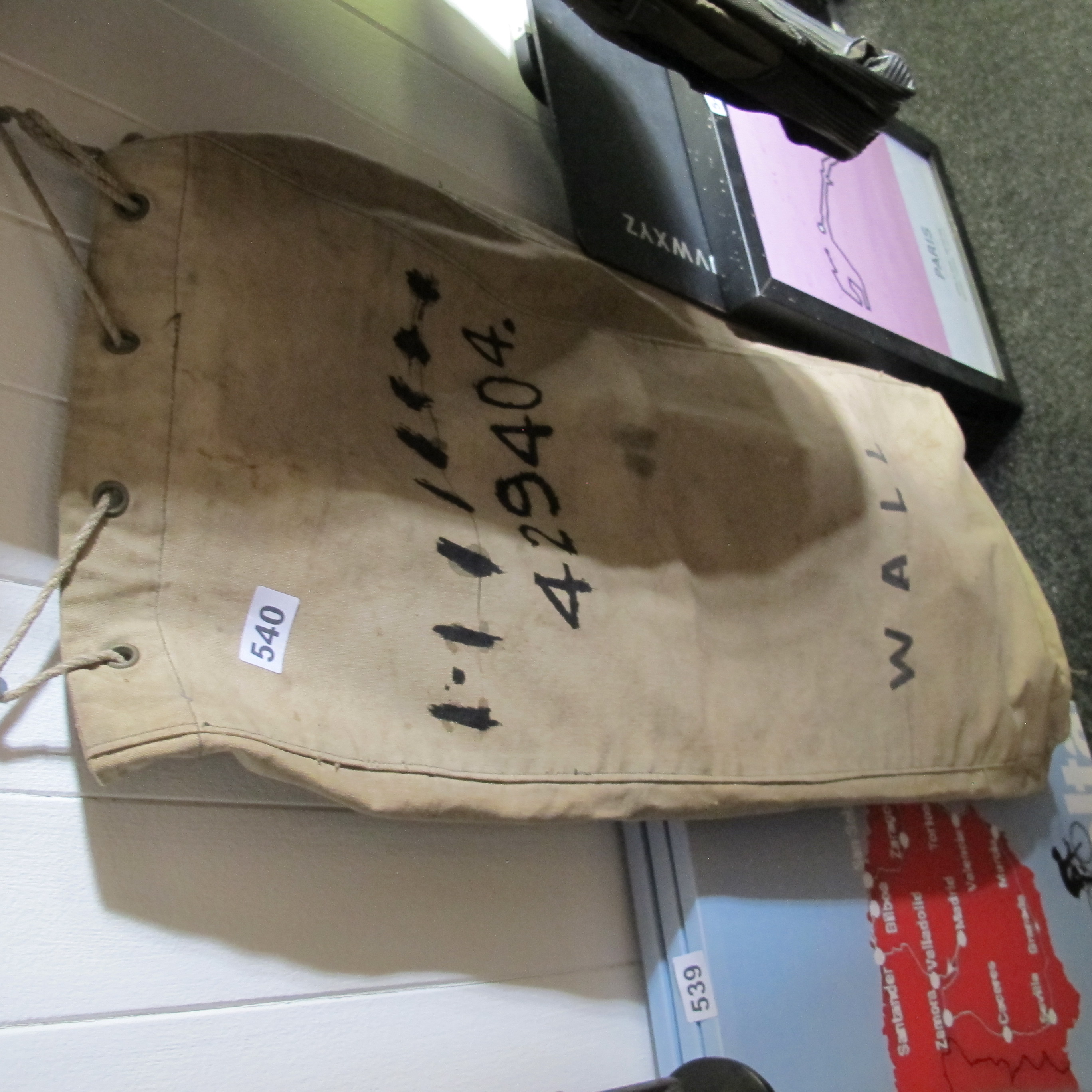 A Trio of Items Including a Vintage Military Style Kit Bag and a Map Game of Spain
