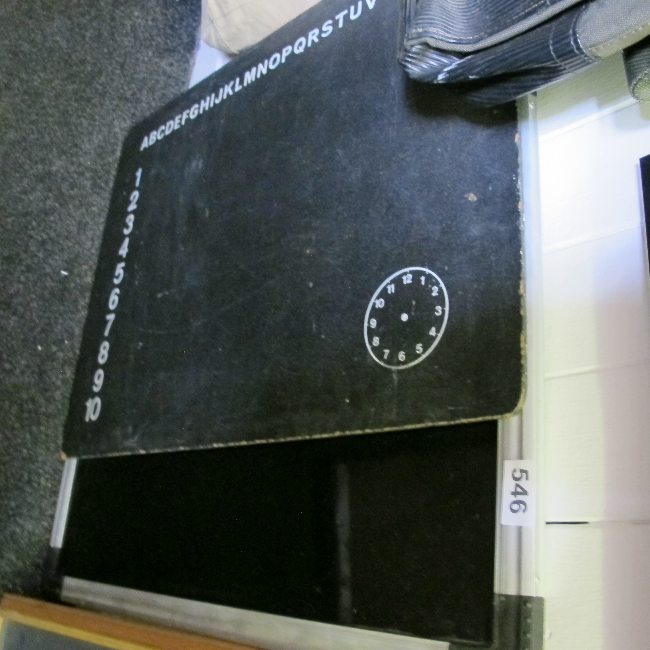 Educational Chalkboard with Alphabet, Numbers, and Clock Face