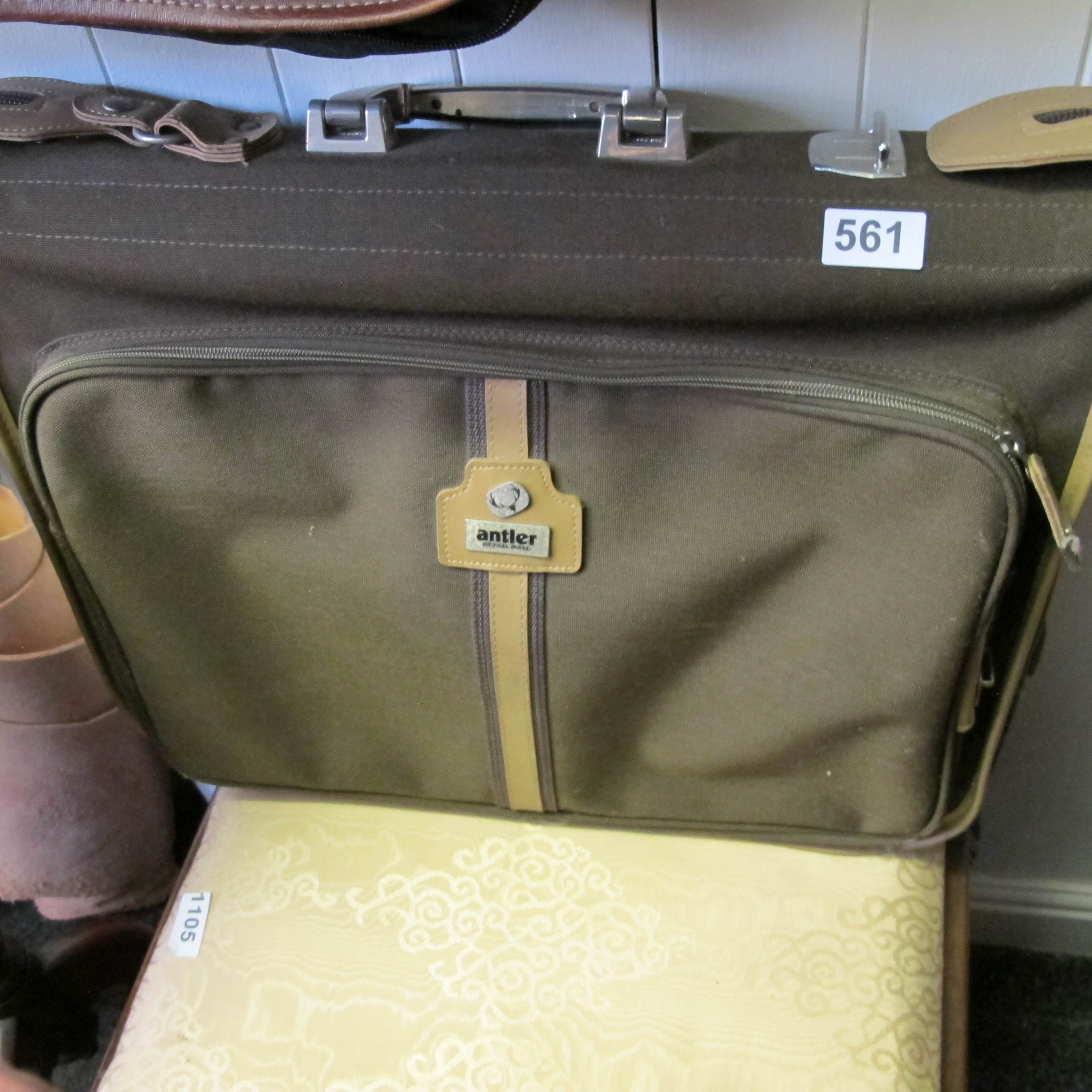 Antler olive green canvas and tan trim travel bag