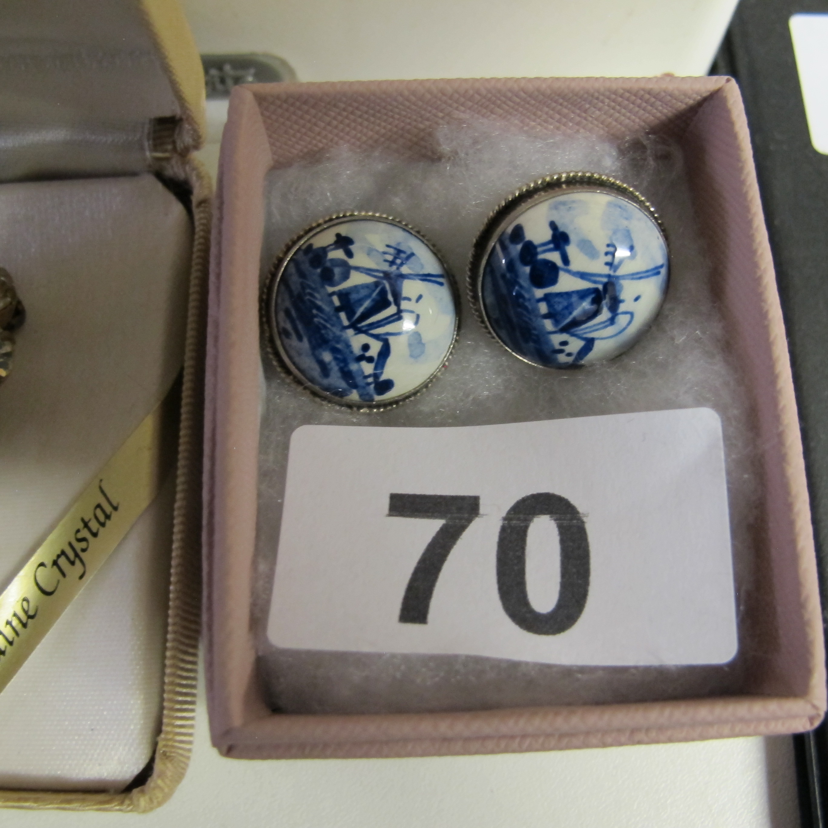 A Pair of Delft Pottery and White Metal Windmill Earrings