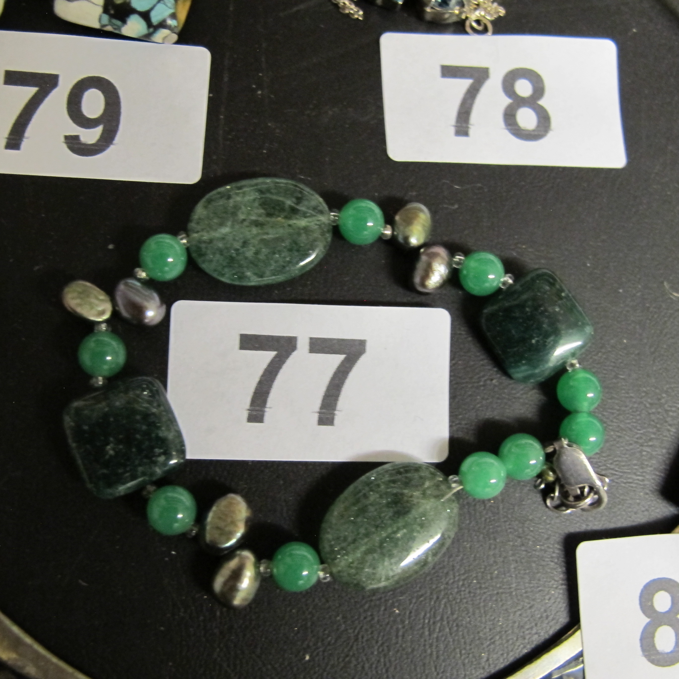 A Green Stone and Baroque Pearl Beaded Bracelet