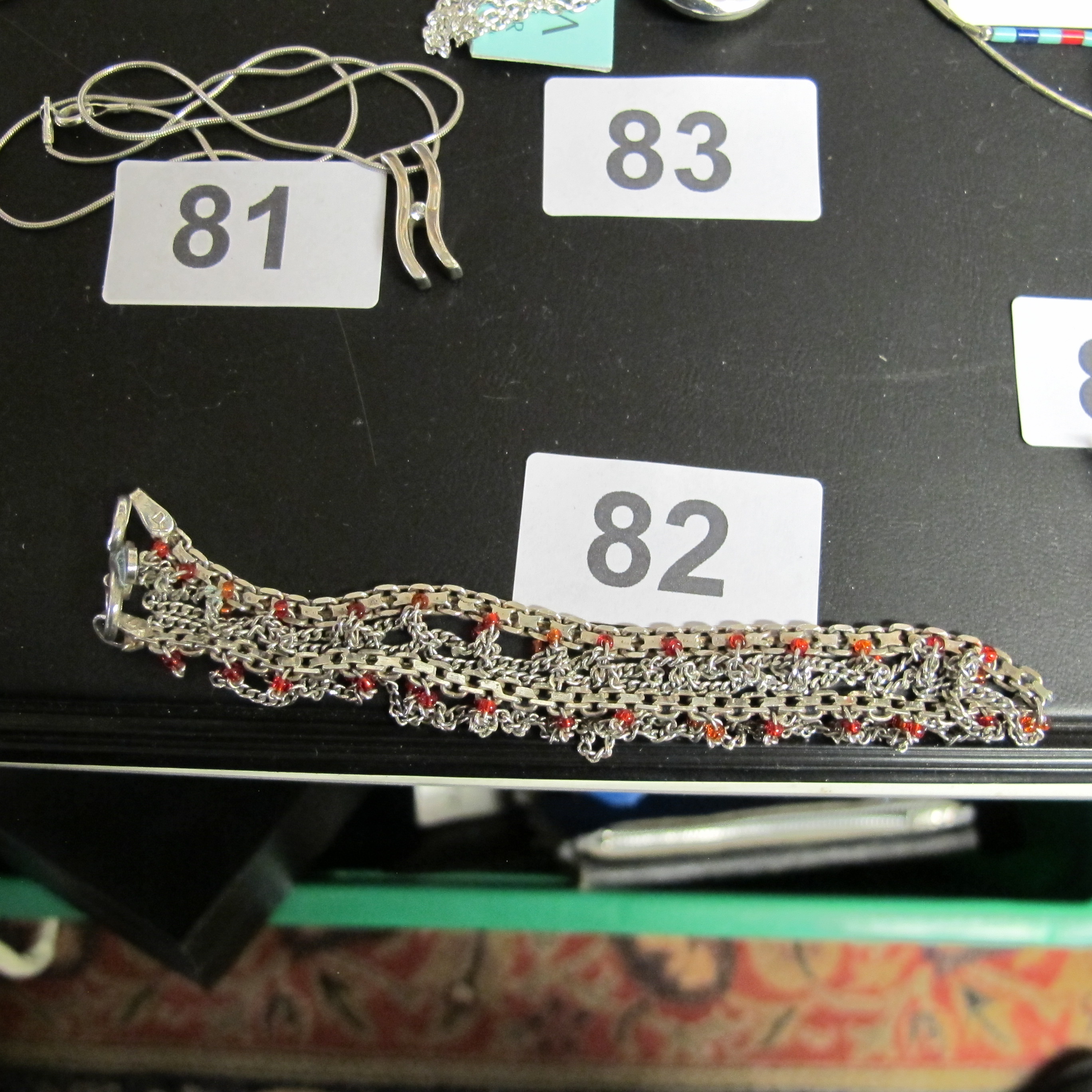 A Multi-Strand Silver-Tone Link Bracelet with Red and Orange Beads
