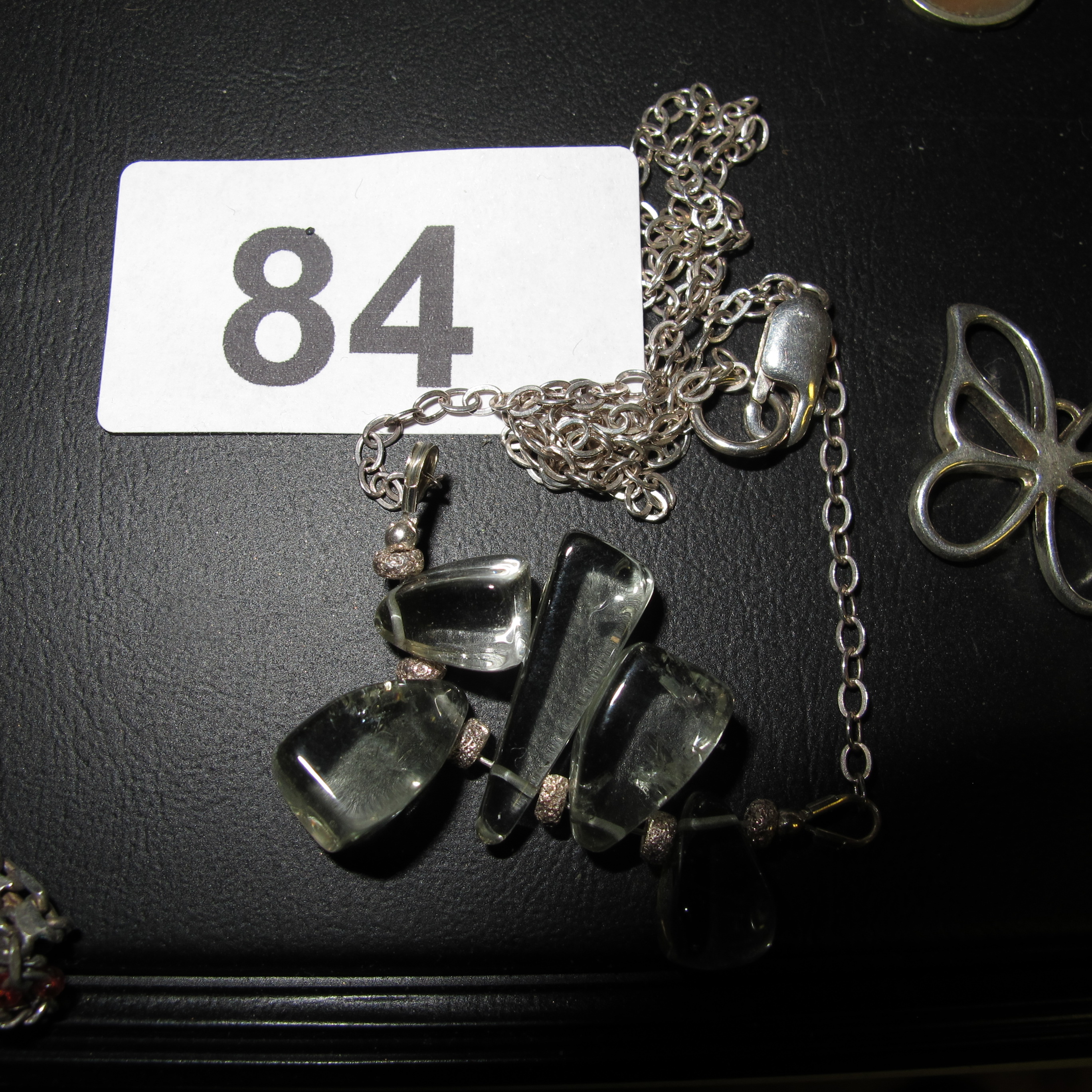 A white metal and prasiolite pendant necklace